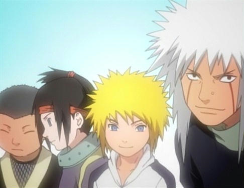 Más tarde Kushina quedaría embarazada y, luego de leer el libro de Jiraiya, donde el personaje principal se llamaba Naruto, Minato dijo que el protagonista era igual que Jiraiya. Fue entonces cuando Minato reveló que él y Kushina querían que su hijo fuera un shinobi como el del libro, y por eso decidieron ponerle el nombre de "Naruto". Minato señaló que Jiraiya seria el padrino de Naruto y este le preguntó si estaba seguro de que querría eso. Minato dijo que Jiraiya era un buen ejemplo para todos ellos y que no podía pensar en un shinobi mejor que él.